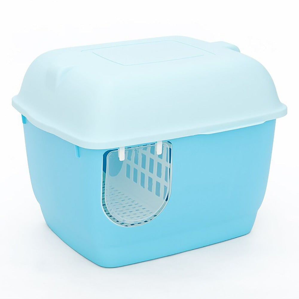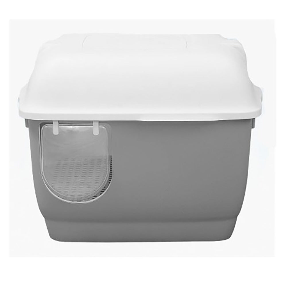 Caja de arena para gatos completamente cerrada, amplia con colador y pala incluida.